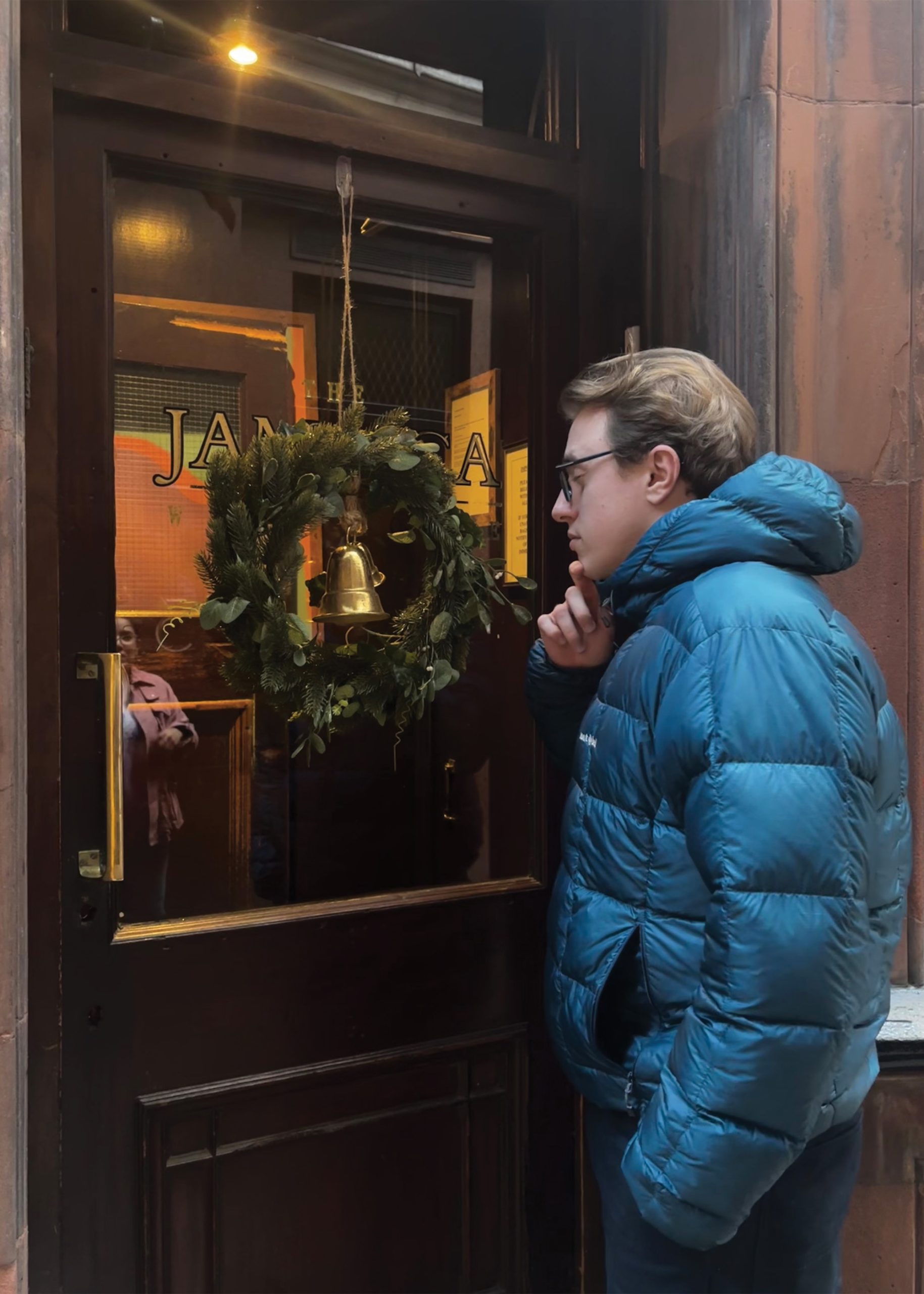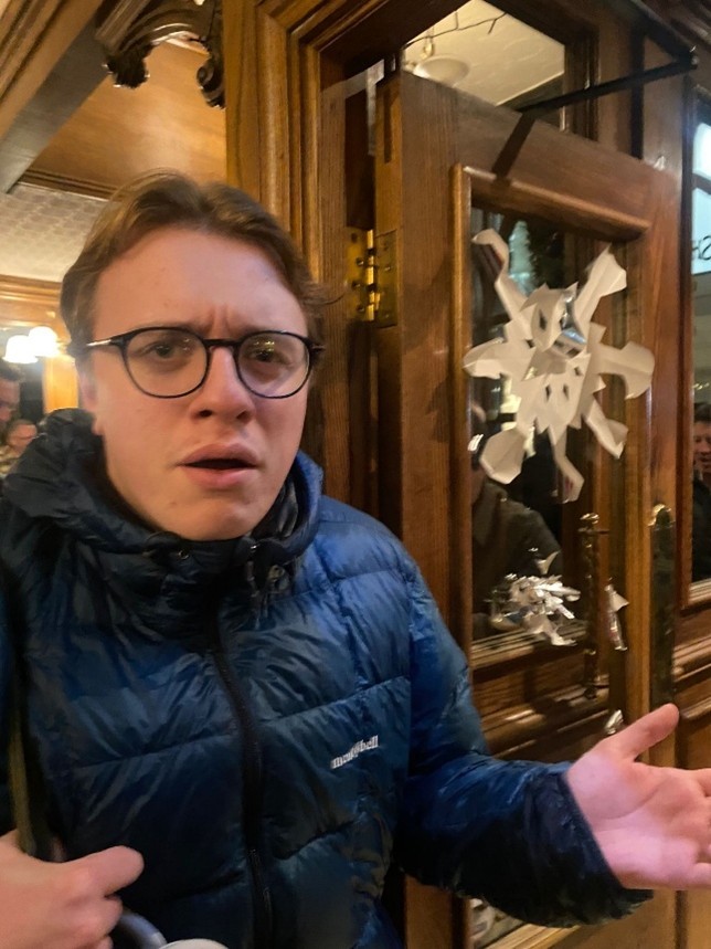 Narrow enough to pass for a carriage on the Orient Express with the carpet to boot, the Cock and Woollpack is probably my personal favourite pub on this list during the off (not Christmas) season. On my recent inspection I was pleasantly surprised by their festive efforts. Nothing grandiose, but some solid wreath and tinsel action meant I had sweet dreams of Santa Claus and presents that evening. I was a little confusedby the door being wedged open on a cold evening (pictured), but that’s not relevant.